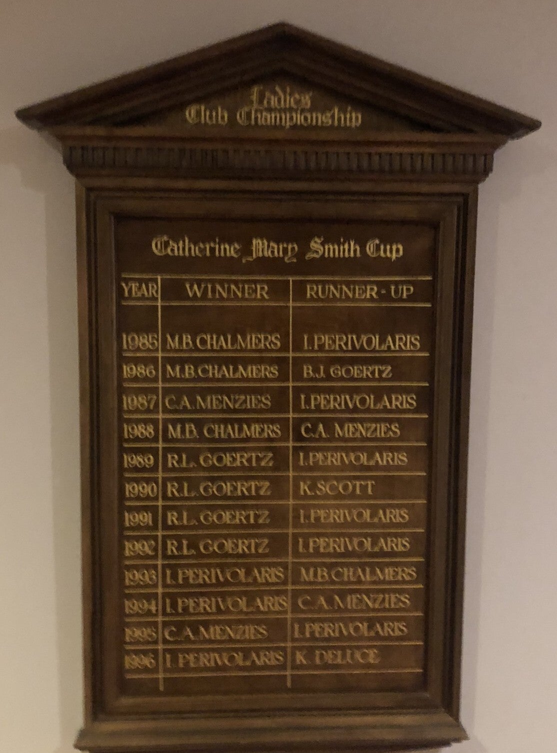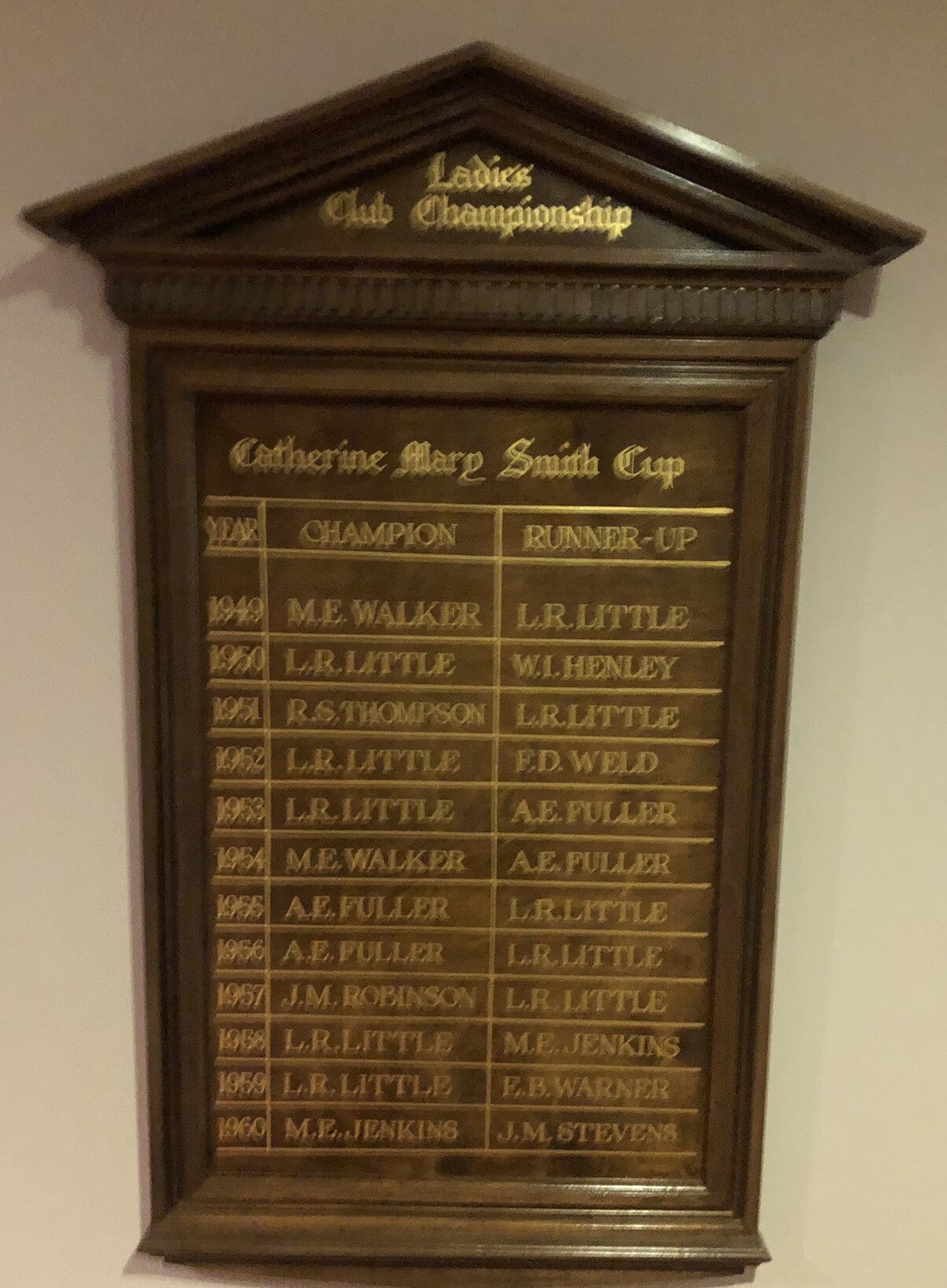 While the Ladies Section of the Club was initiated in 1896 and play began at that time, the Ladies Club Championship has been played since 1925.