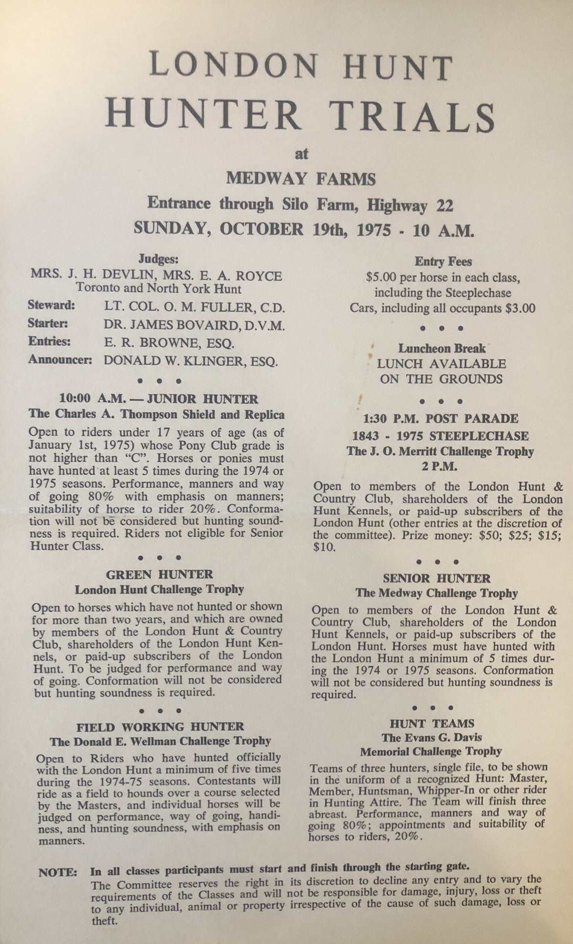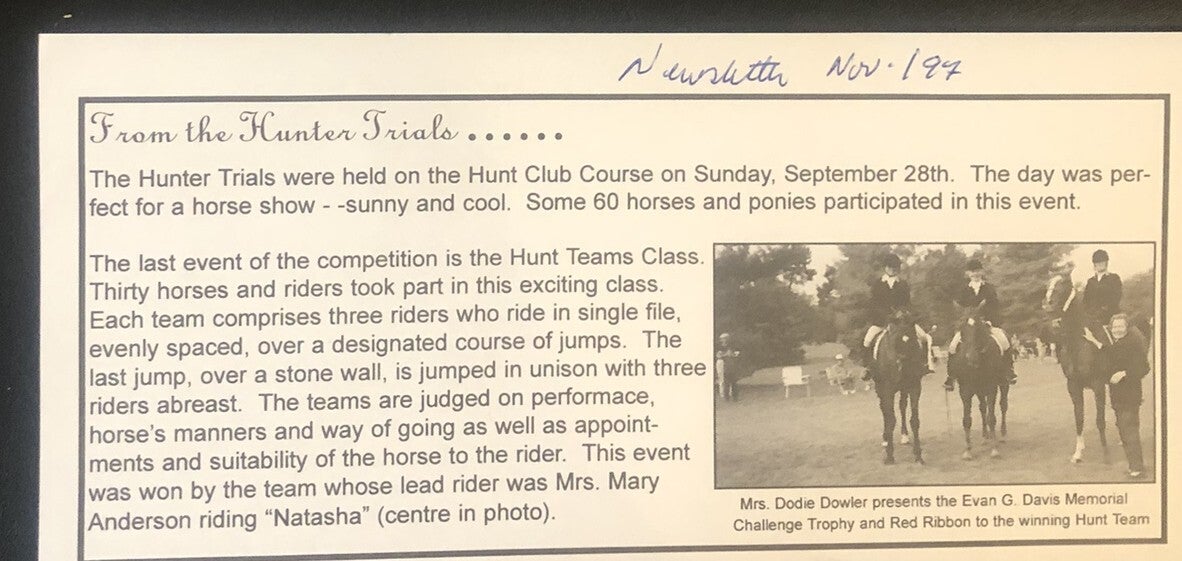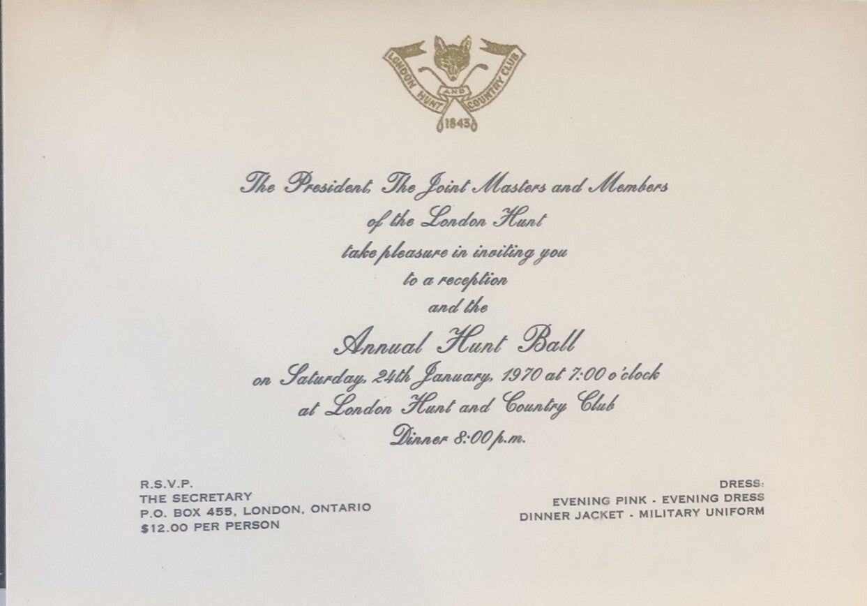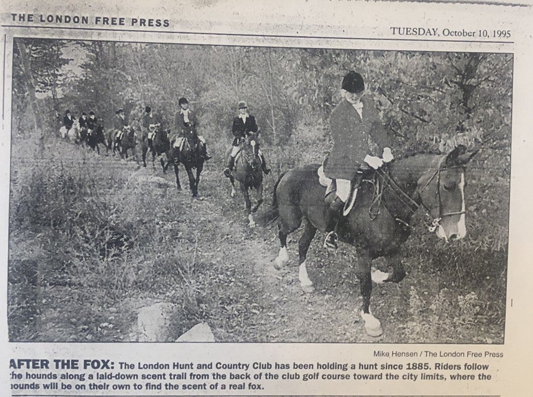 The London Hunt and Country Club began with fox hunting and steeplechase races. The Hunt section was the primary activity for all of its early years, with golf and tennis not being introduced to North America, or the Club until the 1870's. The Hunt section continued to be a primary focus until 2019.