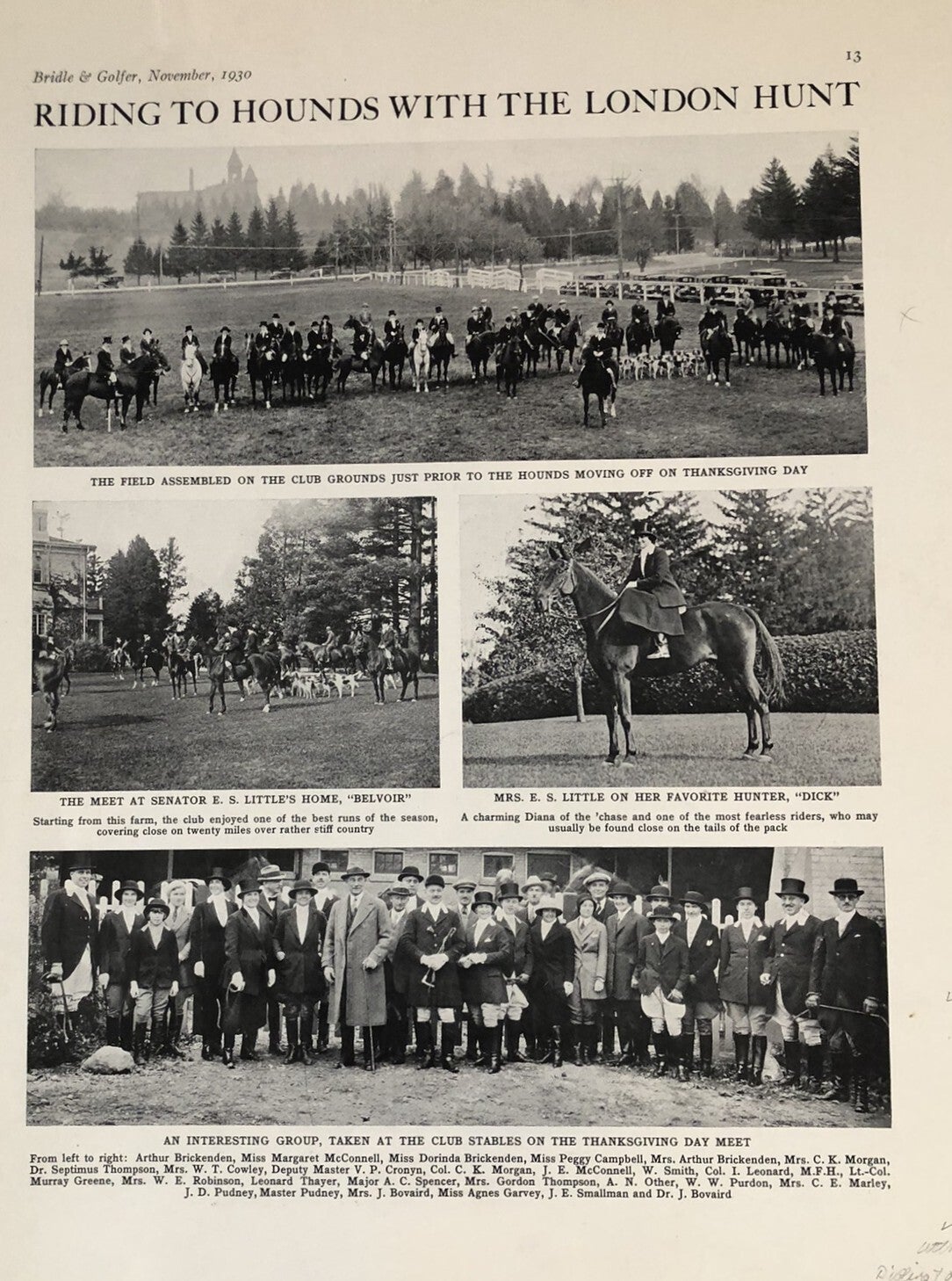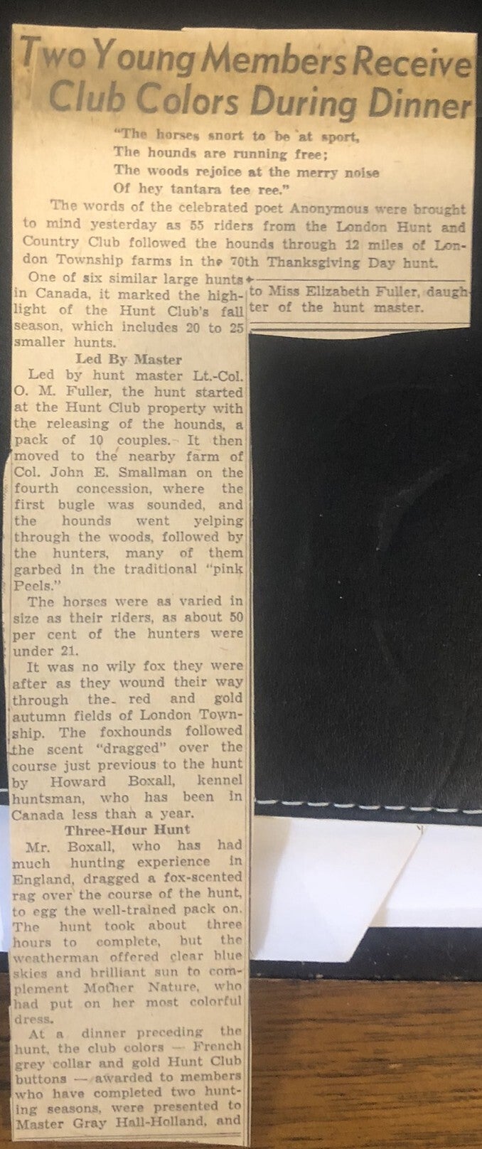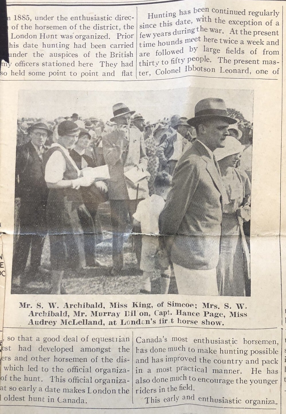 The London Hunt and Country Club began with fox hunting and steeplechase races. The Hunt section was the primary activity for all of its early years, with golf and tennis not being introduced to North America, or the Club until the 1870's. The Hunt section continued to be a primary focus until 2019.